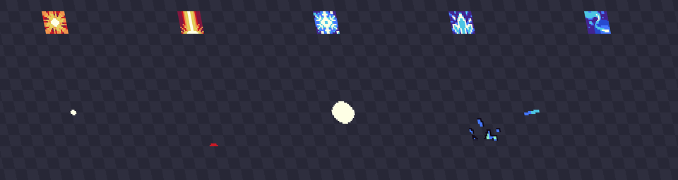 Every particles are made to be used with the Tiny Dungeons asset pack, but you can of course use the effects with any of your project, however a few changes might be required (changing the palette for example).